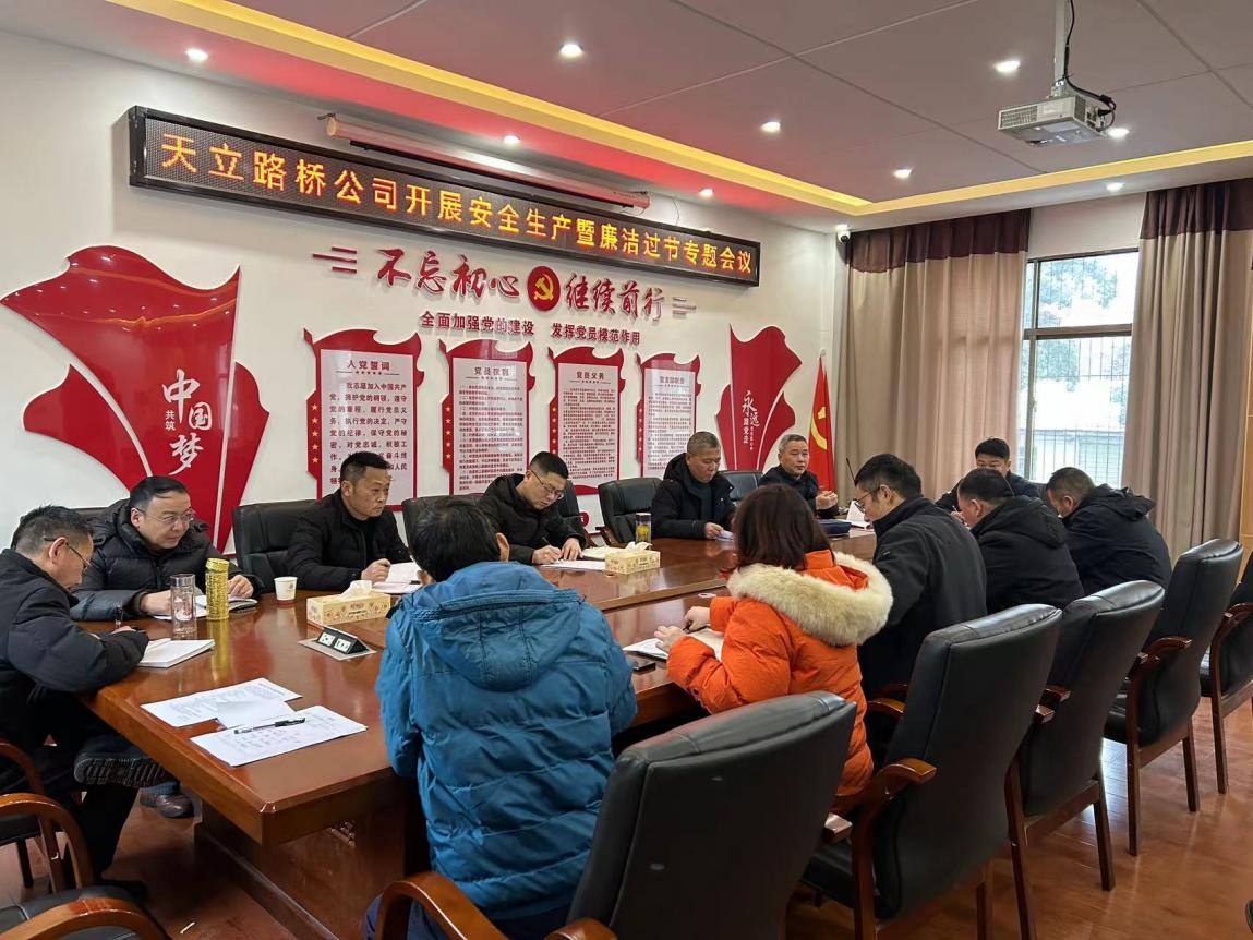 近日,天立路橋公司召開安全生產和清廉過節專題會議,此次會議旨在進一步強化全體員工的安全生產意識,同時倡導廉潔自律,確保春節期間的安全與廉潔。